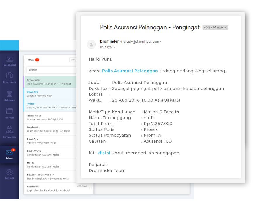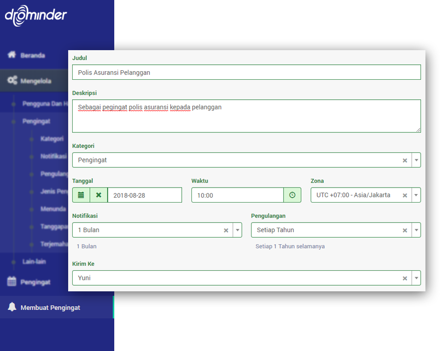 Rani merupakan seorang agen asuransi mobil di Bandung yang memiliki banyak pelanggan di seluruh Indonesia. Rani memiliki 3 orang staff untuk mengurus persoalan polis asuransi pelanggan. Rani dan tim tidak boleh lalai dalam masalah masa berlaku polis asuransi, karena pelanggan dapat dirugikan saat mengajukan klaim ketika polis asuransi sudah tidak berlaku. Hal tersebut dapat berdampak buruk terhadap penilaian bahkan Rani dapat kehilangan pelanggan yang berdampak pada keuntungan perusahaan.