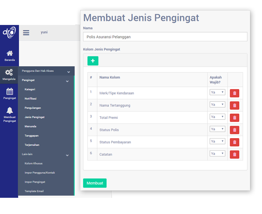 Rani dan tim membutuhkan sebuah sistem yang mampu digunakan bersama untuk mengolah ribuan data polis asuransi pelanggan. Sistem tersebut harus mampu menyimpan seluruh data polis dan memberikan notifikasi pengingat secara rutin setiap tahun apabila masa polis asuransi pelanggan akan segera berakhir.